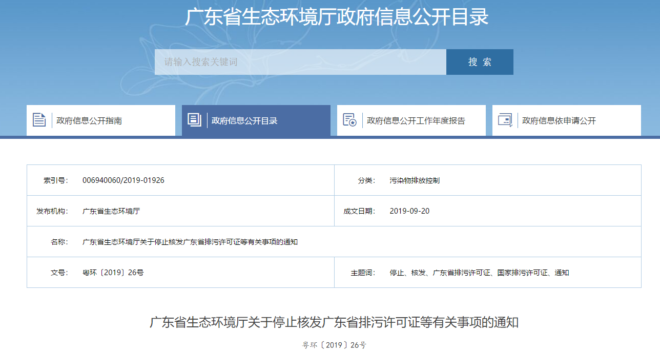 廣東省生態(tài)環(huán)境廳關(guān)于停止核發(fā)廣東省排污許可證等有關(guān)事項的通知