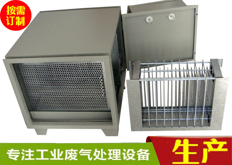 低空排靜電油煙凈化器在凈化器內(nèi)部形成超高壓電場(chǎng),對(duì)通過凈化器的油煙中的污染物顆粒強(qiáng)烈電離并使之荷電,不僅使5微米以上的污染物顆粒在電場(chǎng)力的作用下產(chǎn)生電離,而且使1微米以下的污染物顆粒以及氣味分子充分荷電,這些飽和荷電的微粒和氣味分子經(jīng)過“吸附處理區(qū)”的中和處理,即可達(dá)到充分除油除味的功效。