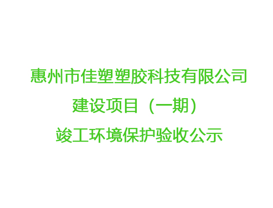 惠州市佳塑塑膠科技有限公司建設(shè)項(xiàng)目(一期)竣工環(huán)境保護(hù)驗(yàn)收公示