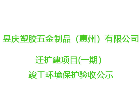 昱慶塑膠五金制品(惠州)有限公司遷擴(kuò)建項(xiàng)目(一期)竣工環(huán)境保護(hù)驗(yàn)收公示