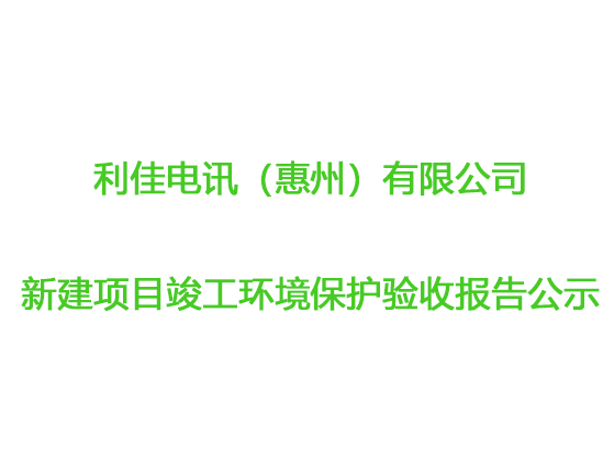 利佳電訊(惠州)有限公司新建項(xiàng)目竣工環(huán)境保護(hù)驗(yàn)收報(bào)告公示