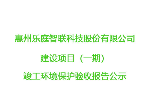 惠州樂庭智聯(lián)科技股份有限公司 建設(shè)項(xiàng)目(一期)竣工環(huán)境保護(hù)驗(yàn)收報(bào)告公示