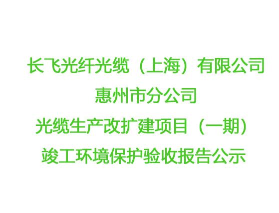 長飛光纖光纜(上海)有限公司惠州市分公司 光纜生產(chǎn)改擴(kuò)建項(xiàng)目(一期)竣工環(huán)境保護(hù)驗(yàn)收報(bào)告公示