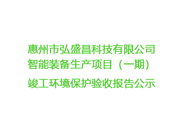 惠州市弘盛昌科技有限公司智能裝備生產(chǎn)項(xiàng)目(一期)竣工環(huán)境保護(hù)驗(yàn)收?qǐng)?bào)告公示 惠州環(huán)??⒐を?yàn)收